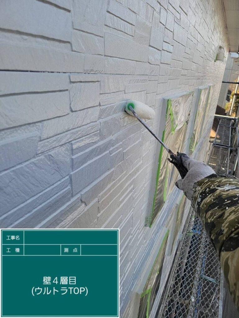 「外壁仕上げ塗装」プレマテックスのオーバーコート・ウルトラTOPを使用